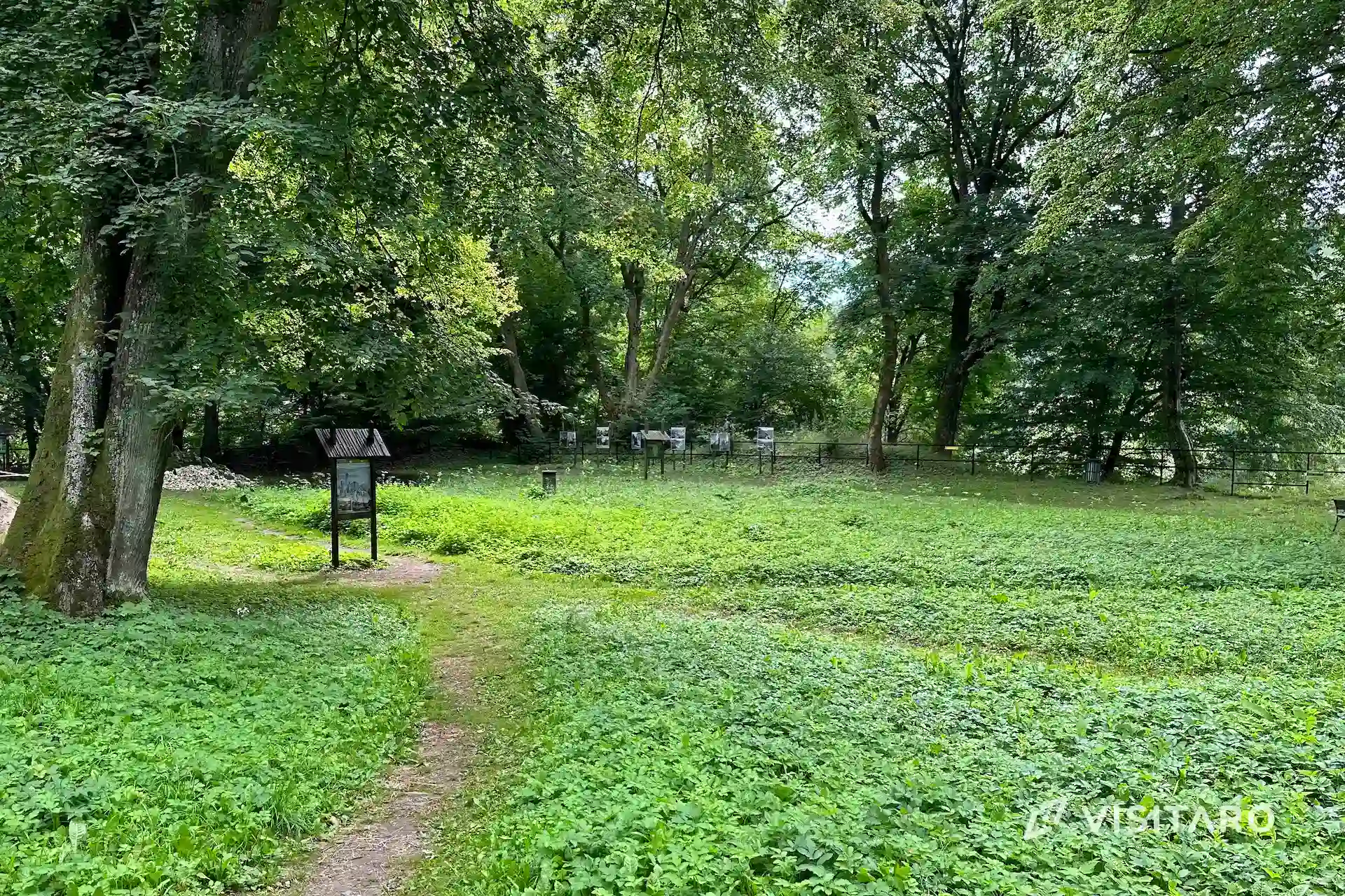 Zamek jest jedną z głównych atrakcji parku. Niektórzy kręcą nieco nosem, mówiąc, że „nic tu nie ma”. To prawda, nie stoi tu już okazały zamek i nie otaczają go potężne mury z basztami. Mimo tego, naszym zdaniem, można tu znaleźć kilka naprawdę ładnych zakamarków. Ot choćby wieża bramna strzegąca wejścia na teren kompleksu, najchętniej fotografowana pozostałość ojcowskiego zamku.